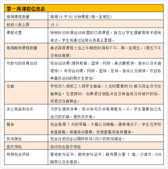 * 營地課程結束后,學生最晚須在周六離開營地。