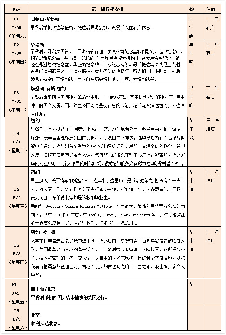 5. 項目包含一周的美國東海岸參觀游玩,涵蓋美國頂尖大學和主要景點;