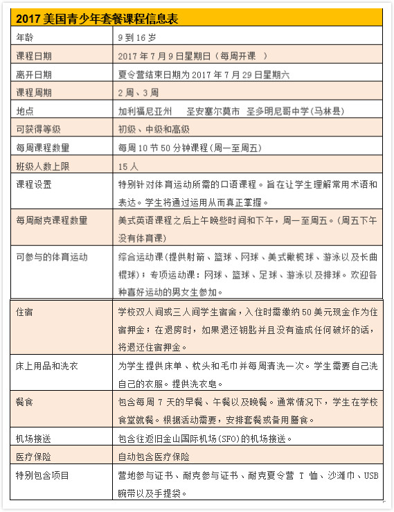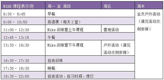 * 營地課程結束后,學生最晚須在周六離開營地。