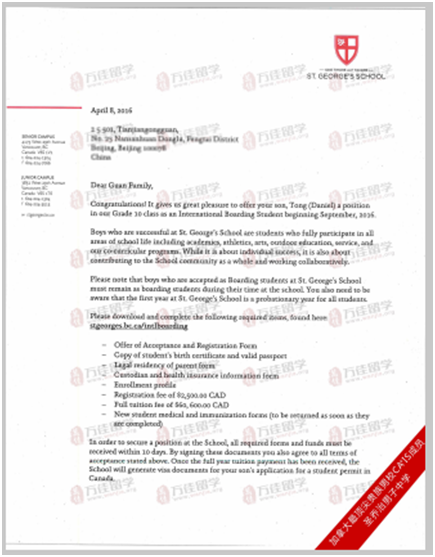 下面附上我們?nèi)珖?dú)家錄取的十年級(jí)的小關(guān)同學(xué)的Offer: