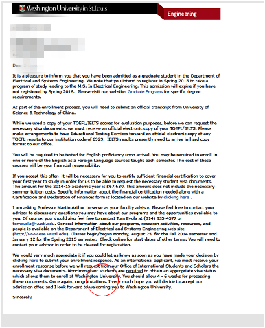 錄取結果:Washington University in St. Louis 華大圣路易斯