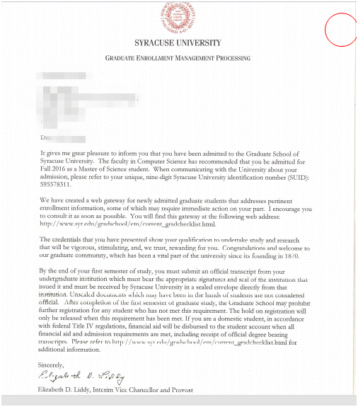 錄取結(jié)果:Syracuse University 雪城大學(xué)