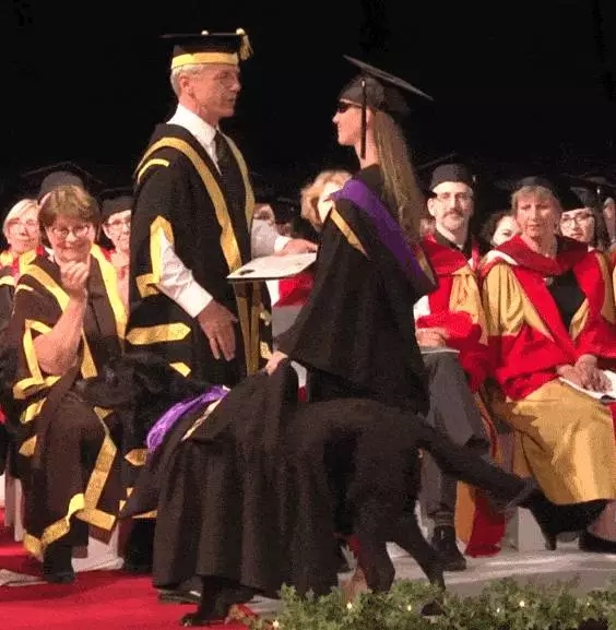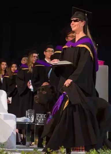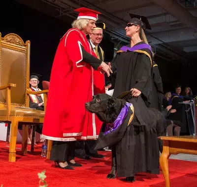 近日,加拿大卡爾加里大學畢業(yè)典禮上,一位失明學生Tina Knight 獲得了法學博士學位。更有趣的是,學校為表彰她的導盲犬所作的杰出貢獻,也給這條狗狗授予了一個特別的榮譽學位。據悉,這已經是卡爾加里大學第二次授予導盲犬榮譽學位了!卡爾加里大學的做法充分體現了校方的人文關懷,讓一切都顯得十分有愛。