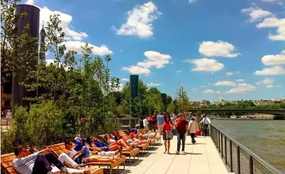 后來時間久了,支起躺椅無非就是曬太陽,沒太大的樂趣,所以任性的巴黎人就又想了法子,還為這想法專門起了一個名字:ParisPlages 巴黎海灘(就是每年的夏天在塞納河畔鋪上人工沙子,把塞納河旁裝飾成人工沙灘)
