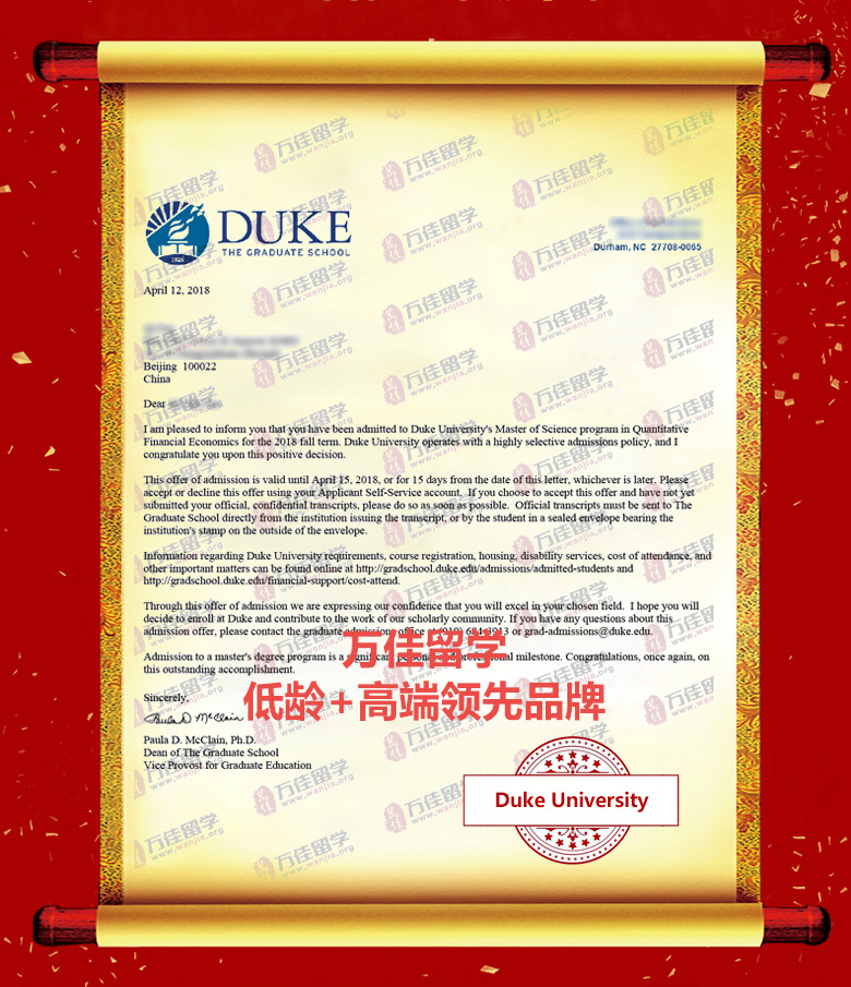 獲得杜克大學(xué)定量金融經(jīng)濟(jì)學(xué)碩士錄取