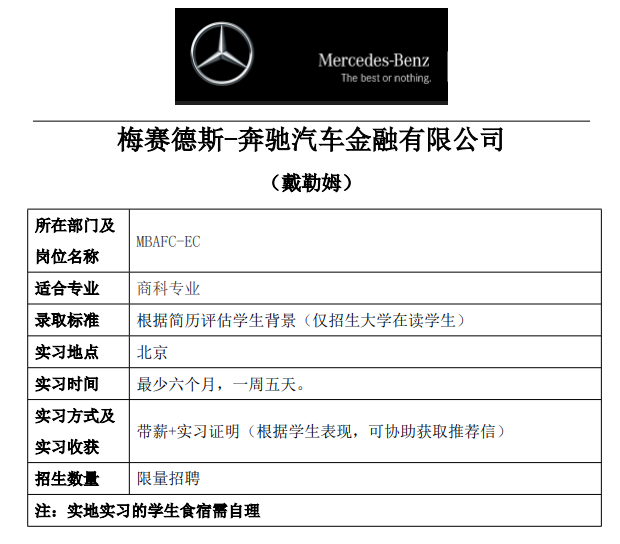 梅賽德斯-奔馳汽車金融有限公司 (簡稱“奔馳金融”)成立于 2005 年 9 月,隸屬于戴姆勒金融服務集團。其業務覆蓋梅賽德斯-奔馳品牌的轎車、輕型商用車、卡車及 smart 品牌的所有車型;為全國超過 260 家梅賽德斯-奔馳授權經銷商,以及中國消費者量身定制金融貸款及車輛保險產品。