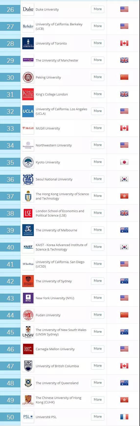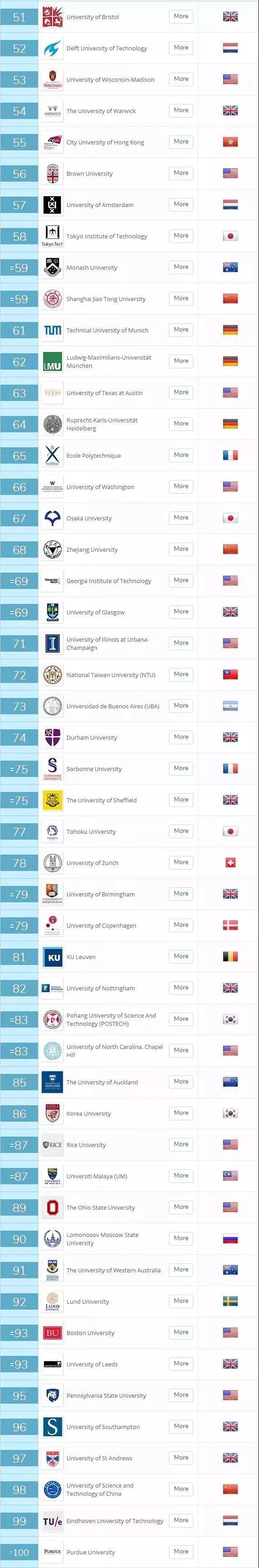 曼大今年長(zhǎng)臉了,不負(fù)眾望的從18年的34名上升到29名。另外,去年甩在百位后的利茲大學(xué),今年也沖進(jìn)前100 排名93,這兩所中國(guó)留學(xué)生青睞的大學(xué)妥妥的一匹黑馬。想要去紐卡的同學(xué)也該happy了~紐卡斯?fàn)柎髮W(xué)也從161名排到了141名。