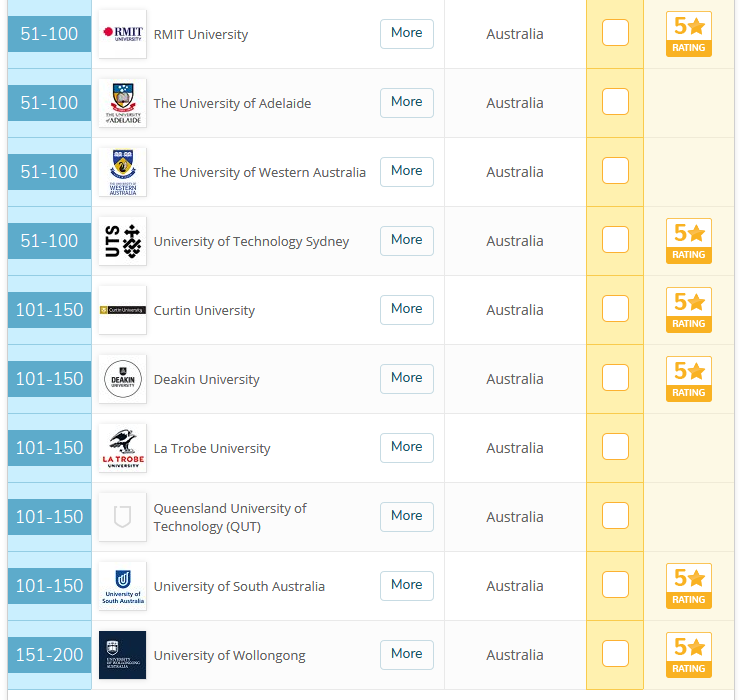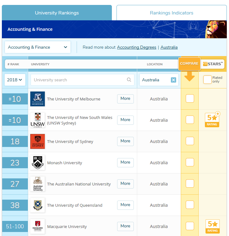 首先,給大家看一下澳洲金融專業有多強?請看下圖的2018-2019QS專業排名