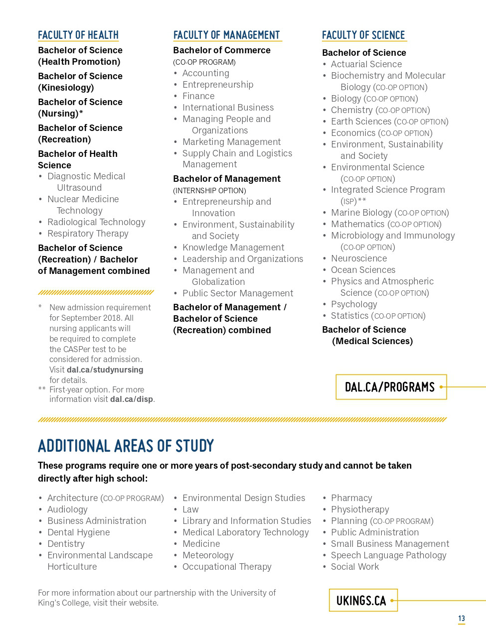 達爾豪斯大學 (Dalhousie University)擁有超過3600 門課程,比其他加拿大大學提供給你更多的選擇。其獨具特色的課程包括建筑學、服裝研究、社區規劃、信息學、環境/可持續發展與社會、水產業、國際食品商業。作為加拿大東部大西洋地區具有領導地位的科研機構,達爾豪斯大學每年都有超過1 億加幣的科研基金和發展獎金。許多世界上海洋科學家都在這里工作和教學。大學每年還招聘數百名在職學生作為實驗室科研項目的助手。