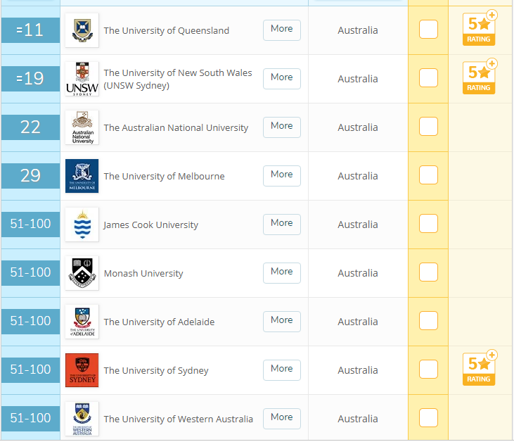 澳洲大學 –環(huán)境學科排名 – 世界前百