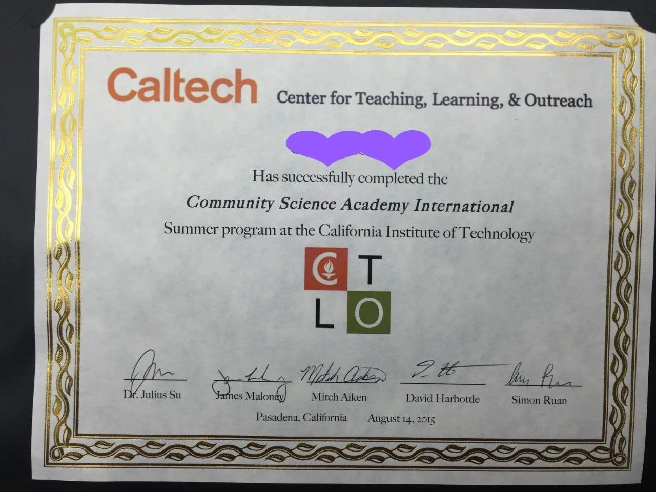 ● 每天7小時,在美國帕薩迪納市加州理工學院上課;
