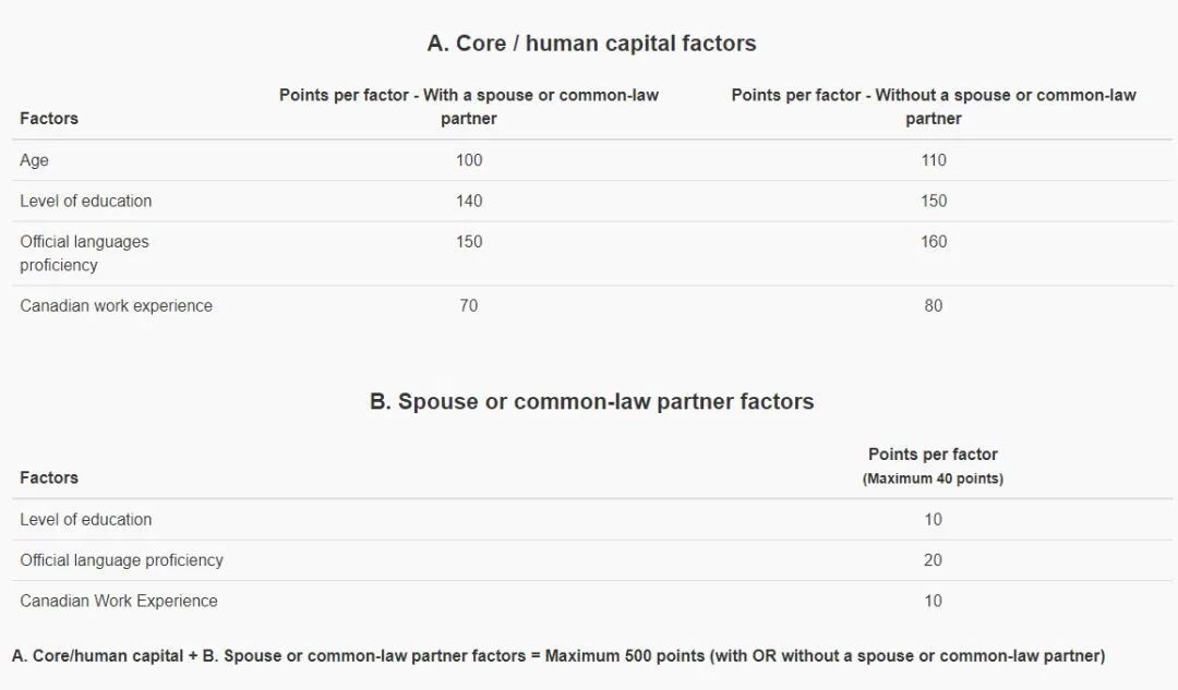 CRS的滿分為1200,主要從以下4個方面對申請人進行評估: