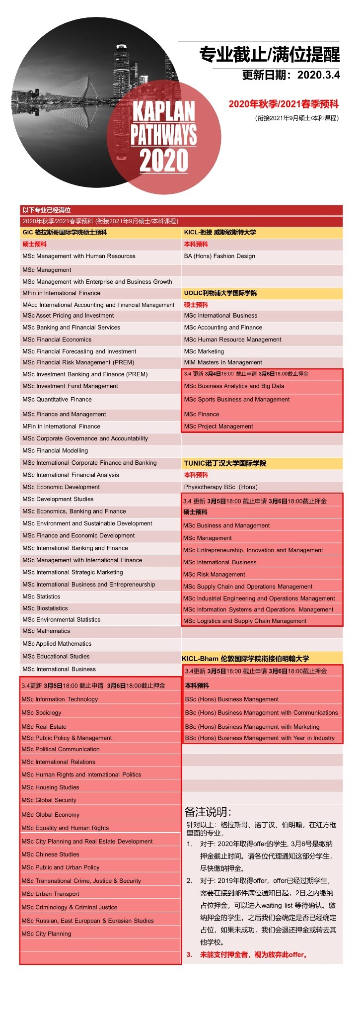 目前其他大學預科課程還未公布截止消息,我們會隨時跟進更新。