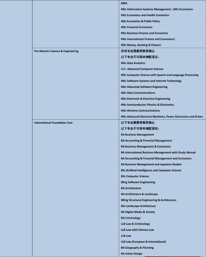 由于申請量過大,考慮到目前學生無法參加語言考試的困難情況及其不可確定性,在 2020 年 1 月 20 日公布的政策基礎上學習集團英國項目將就部分受限制的項目/專業進一步采取以下措施以確保學生的最佳學習體驗: