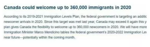 根據加拿大《2019-2021年移民計劃》顯示,聯邦政府的目標是到2020年新增341,000名移民。但是這一目標已于去年實現,加拿大今年可能會再次超越。實際上該計劃顯示加拿大將在未來三年內歡迎超過130萬新移民。
