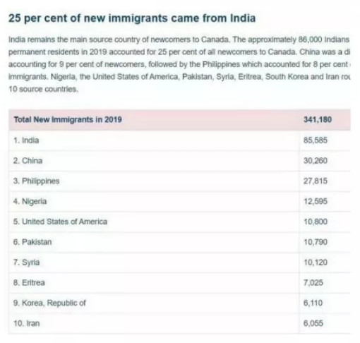 CanadaVisa政策與數碼策略總監發表的一篇文章中說,印度已經有幾年在加拿大移民來源國中排第一了,去年更增加到占新移民總數的25%。