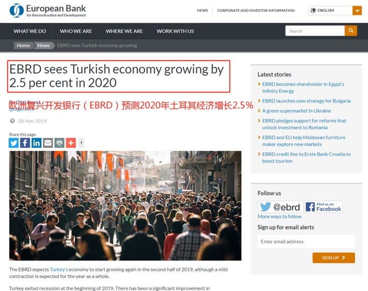 同時,世行也預測,2020年土耳其經濟將恢復2.5%的增長率。根據歐洲復興開發銀行最新的區域經濟展望報告顯示,從持續放緩中復蘇可能是漸進的。