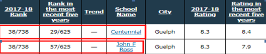 圭爾夫教育局排名安省前五十且尚有名額的學(xué)校