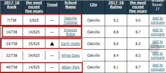 哈爾頓教育局排名安省前五十且尚有名額的學(xué)校