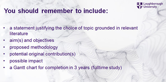 英國的博士基本申請材料和研究生大致相同,學(xué)位證和畢業(yè)證,成績單,個人陳述,簡歷,兩封推薦信,還有語言成績。除了這些,博士申請?zhí)赜械模彩亲钪匾木褪茄芯繄蟾媪恕Q芯繄蟾媸求w現(xiàn)你對即將要在博士階段研究課題的想法介紹,是給博士導(dǎo)師的最初印象。是顯示你研究的能力和潛力,也是錄取的關(guān)鍵因素。下面我們來看下全英前10的大學(xué)拉夫堡大學(xué)對于申請博士的研究報告的小建議: