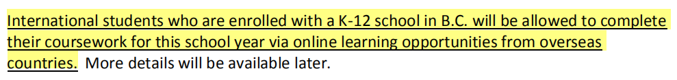 每個學(xué)生都將獲得最終成績并且順利進入下一個年級。加拿大政府已表示將允許持有有效學(xué)習(xí)許可的學(xué)生重新進入加拿大;他們不受聯(lián)邦關(guān)于進入加拿大的限制。