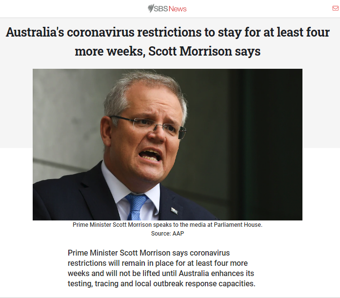 今日下午,澳洲總理莫里森宣布,澳洲的社交禁令須延長至少4周。就目前全球的新冠疫情情況來看,澳洲是全球控制效果比較好的國家之一,澳洲甚至被科學家評為新冠病毒爆發期間最安全的地區。澳洲政府也將繼續加強新冠防控、追蹤和治療能力,所以希望堅持留在澳洲學習的童鞋們不要憂慮,家長也請放心。