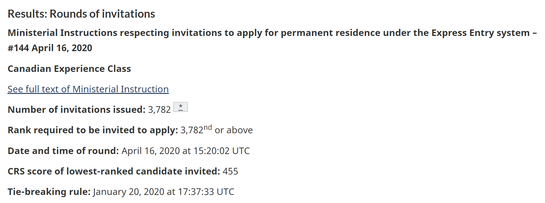 Express Entry: 已經 “入池”的申請人,通過Express Entry里面的打分系統“Comprehensive Ranking System (CRS)”進行排序。移民局按分數高低順序,邀請得分最高的一批人Invitation to Apply (ITA)。收到邀請后,申請人有60天的時間準備移民材料,并且遞交移民申請。