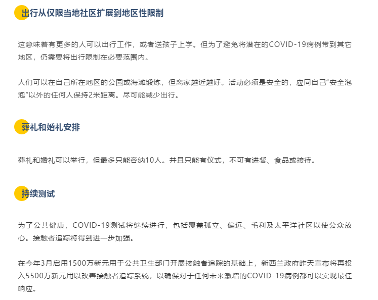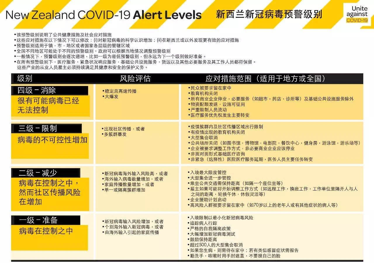 4月20日,新西蘭總理Jacinda Ardern宣布,延長4級警報到下周一,之后再下降到3級警報。