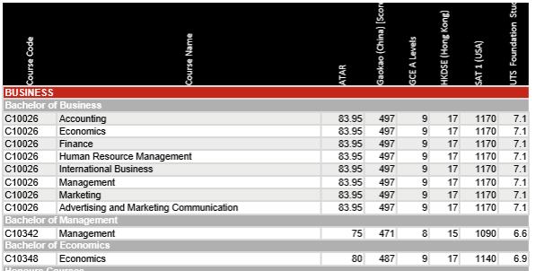 悉尼科技大學認可SAT+國內高中畢業證申請本科大一
