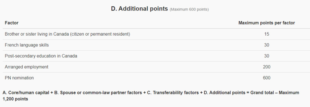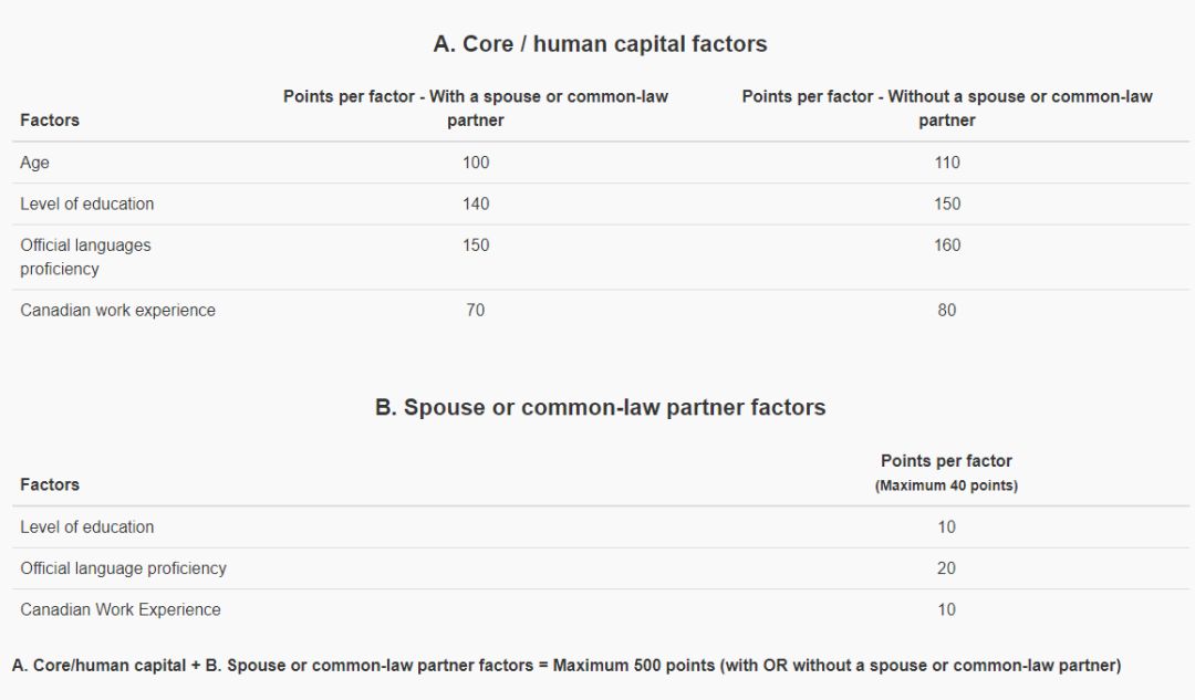 CRS的滿分為1200,主要從以下4個方面對申請人進行評估: