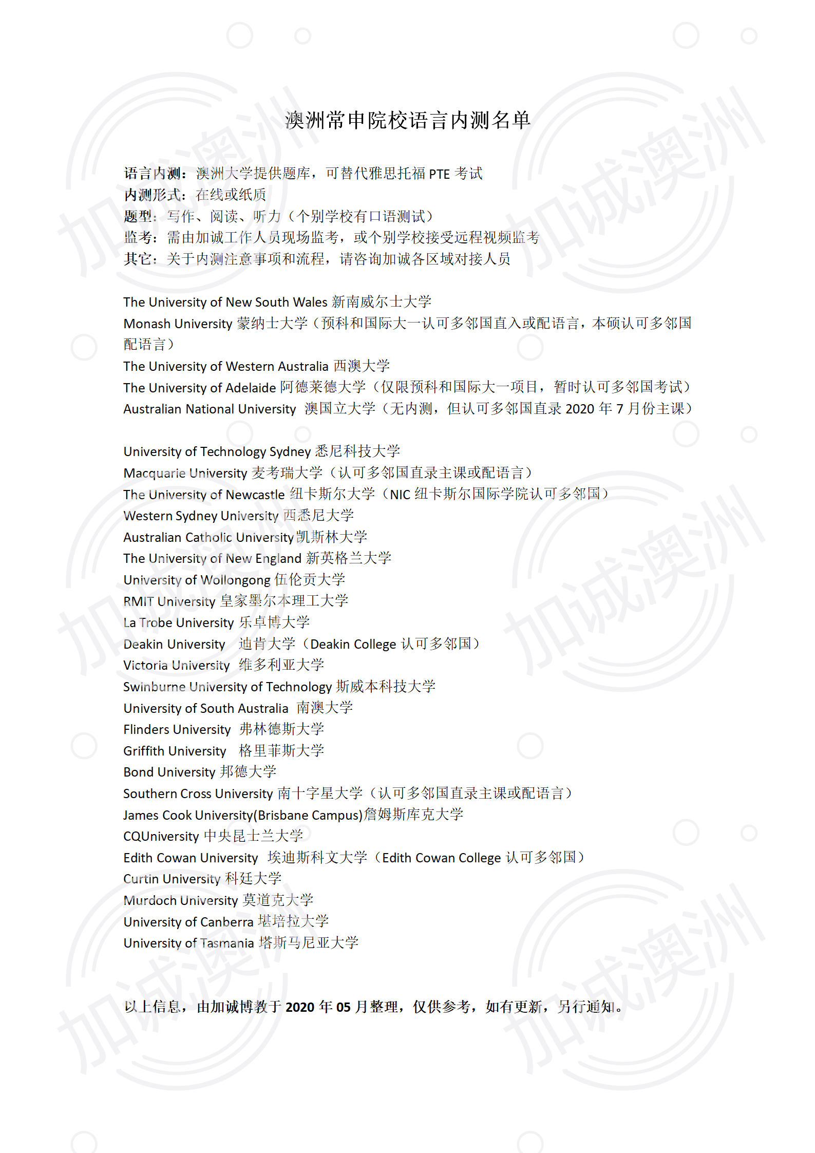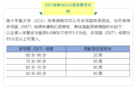 為了減少由于新型冠狀病毒肺炎(Covid-19)給想赴澳同學(xué)學(xué)習(xí)所帶來的不便,南十字星大學(xué)現(xiàn)已正式認(rèn)可多鄰國英語測試(Duolingo English Test,DET)作為我校2020年第二學(xué)期以及第三學(xué)期的入學(xué)英語評定標(biāo)準(zhǔn)。澳大利亞現(xiàn)今僅有幾所大學(xué)承認(rèn)DET成績,南十字星大學(xué)正是其中一所。此外同學(xué)們也可選擇報(bào)名參加南十字星大學(xué)內(nèi)測(Placement test)考取語言成績