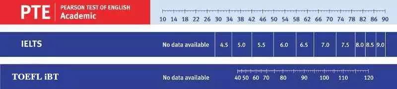 相當于托福聽說讀寫四項分別為28,26,29,30;PTE四項至少達到79分。