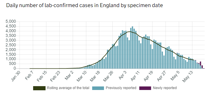 (英國每日確診人數呈下降趨勢,數據來源于GOV.UK)