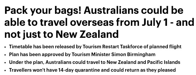 據(jù)澳媒表示,澳洲政府計(jì)劃在7月1日解除國(guó)際旅行禁令,新西蘭和太平洋島嶼國(guó)家或?qū)⑹堑谝慌夥獾膰?guó)家,還計(jì)劃在9月10日解封第二批,中國(guó)或有望出現(xiàn)在第二批名單中,12月15日會(huì)開始開放所有國(guó)家的國(guó)際旅行。