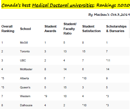 如果一定要看看加拿大的大學排名,那比較權威的是加拿大本土排名,麥考林排名。