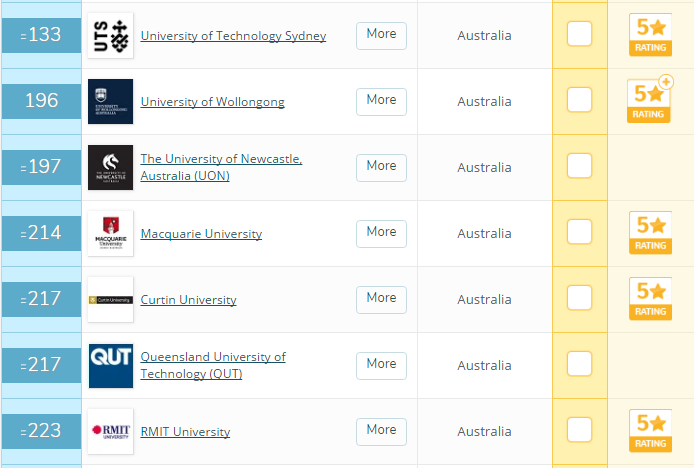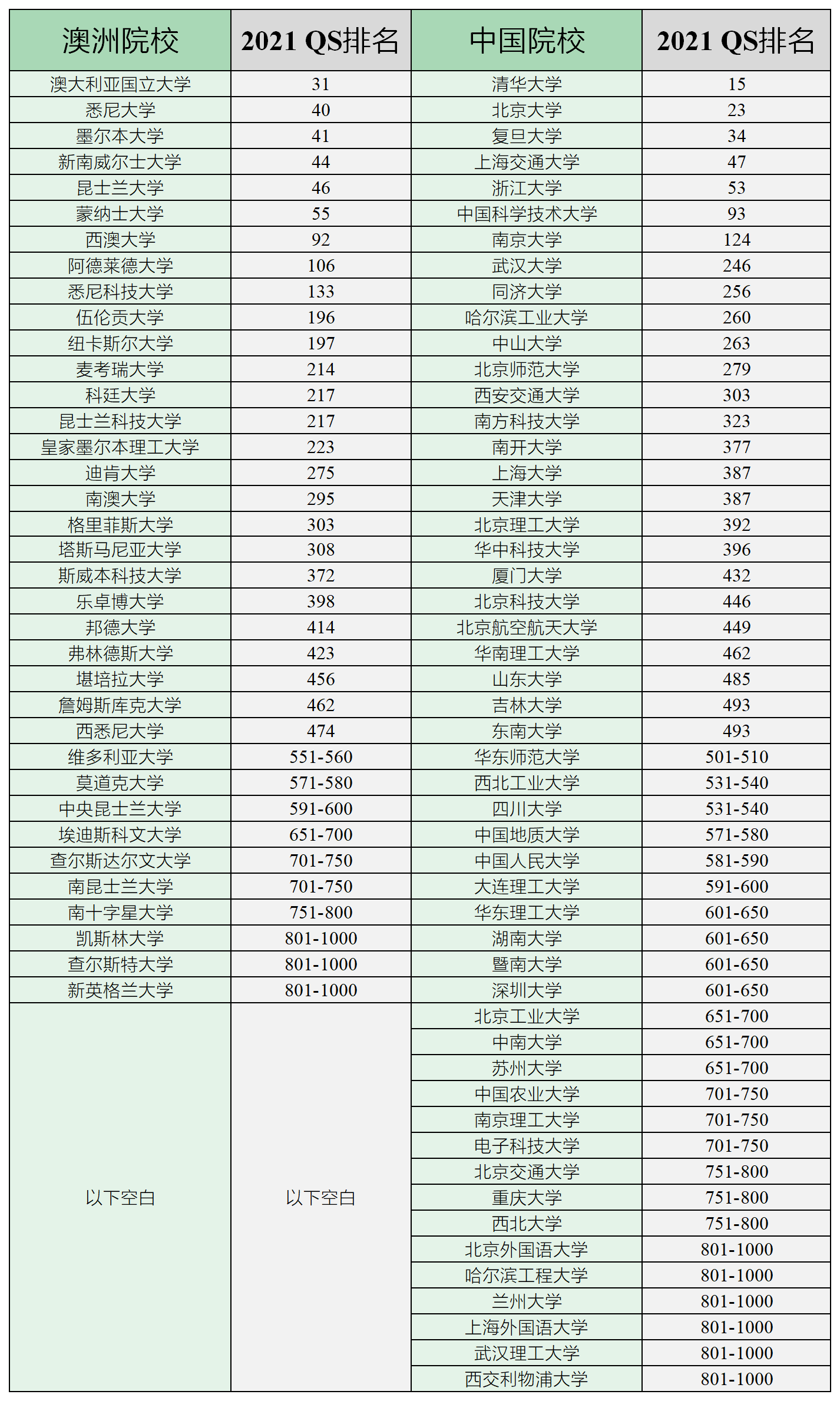 最后,小編為大家帶來中澳院校2021 QS排名匯總,歡迎保存。