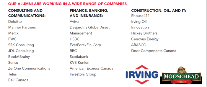 UNB的MBA項目因為有2個月的實習,并與當地眾多大型的連鎖集團有良好的合作關系,就讀MBA的學生中,30%在畢業前就已經獲得工作offer, 剩余70%的學生在畢業半年內也基本都落實了工作,就業率達到了近100%。所以,學生可以完全無后顧之憂,順利實現讀書-就業-移民的“加國夢”。