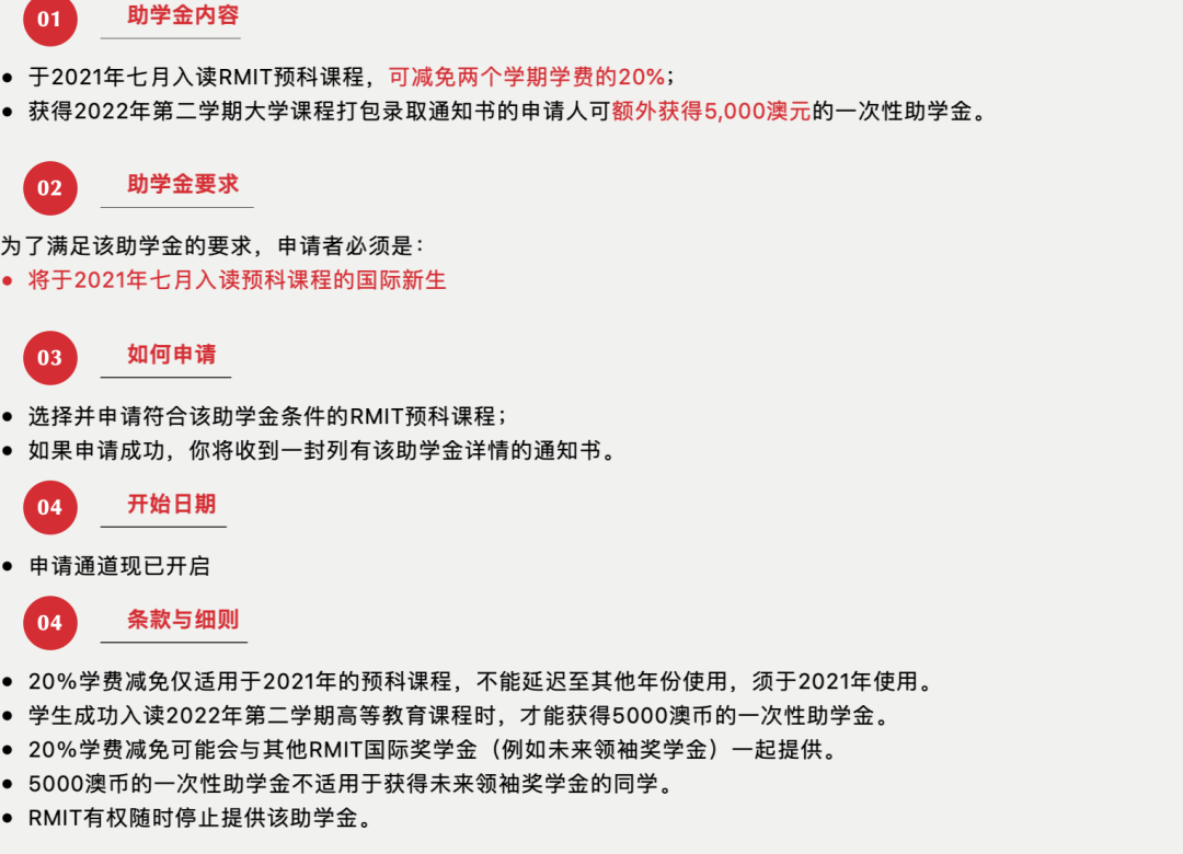 RMIT在官方微信上更新了一則激動人心的消息。RMIT的預(yù)科新生助學(xué)金將回歸了!學(xué)費最高減免20%,還有機會獲得5000刀的一次性獎學(xué)金。