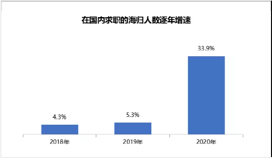 智聯招聘發布的《2020中國海歸就業創業調查報告》顯示:2020年,向國內崗位投遞簡歷的海歸人員,較上一年猛增33.9%,增幅遠高于2019年和2018年。而應屆留學生,準備回國就業的人數,比2019年猛增67.3%,增幅是海歸總體的2倍,供應在增多,坑位卻在減少。