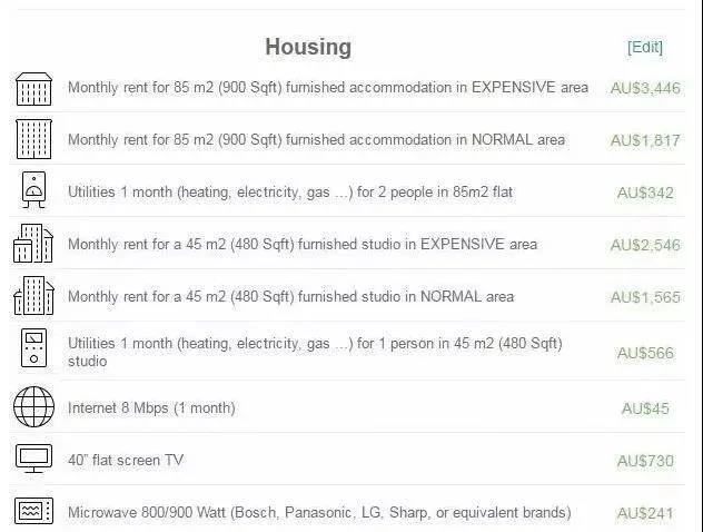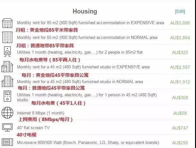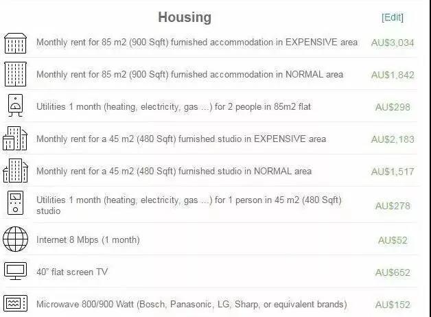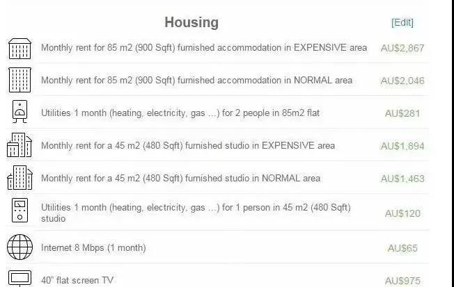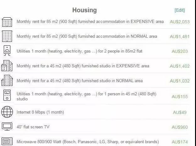 生活費:每年約為 2.2-3.2 萬澳幣(因不同位置房屋租金差別過大,此項未統(tǒng)計租金在內(nèi))