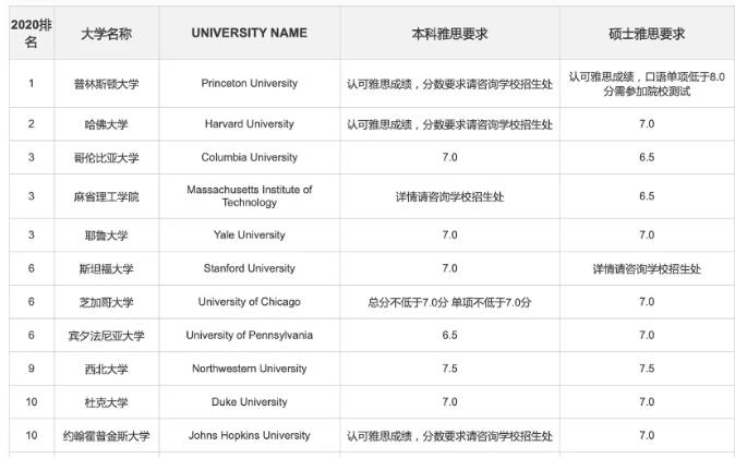 隨著雅思影響力的不斷擴(kuò)大,包括常春藤盟校在內(nèi)越來越多的院校,認(rèn)可雅思成績。U.S.NEWS美國綜合大學(xué)本科排名Top100中的多數(shù),雅思要求都達(dá)到了總分7分。