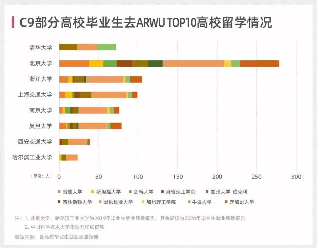 根據(jù)C9各高校的畢業(yè)生就業(yè)質(zhì)量報(bào)告,整理了其升學(xué)及就業(yè)流向,借以概觀我國人才的整體流向。