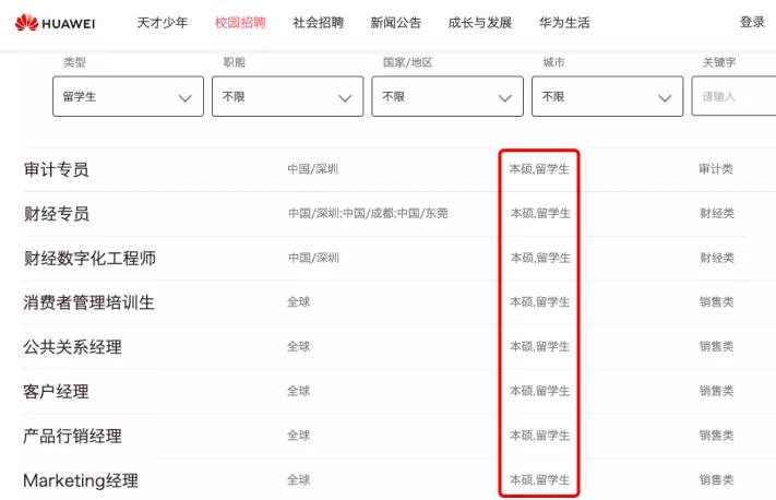 這一點(diǎn),從最近國內(nèi)企業(yè)對(duì)留學(xué)生的招聘友好政策,就能看出來。國內(nèi)大廠企業(yè)、國企、央企對(duì)留學(xué)生也開啟了“專屬通道”!比如,今年華為的校招,專門開設(shè)了留學(xué)生招聘專屬通道,從研發(fā)、銷售到法務(wù)、人力,各類崗位一應(yīng)俱全。