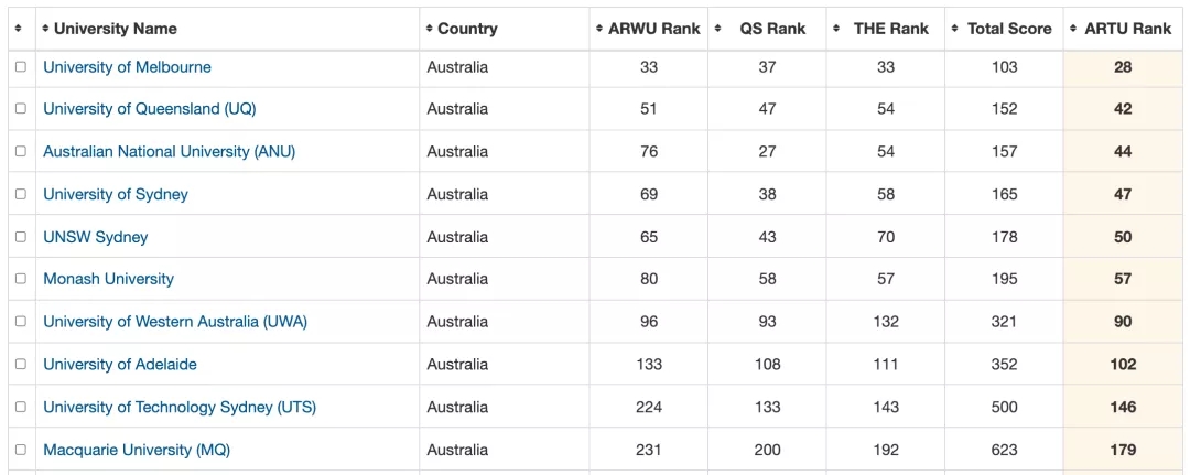 最新ARTU排名發布澳洲大學表現突出