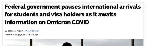 根據澳大利亞首席醫療官Paul Kelly教授提供的醫療建議,澳洲政府將實施額外的邊境安全預防措施。本次澳洲入境規定已于11月27日生效:
