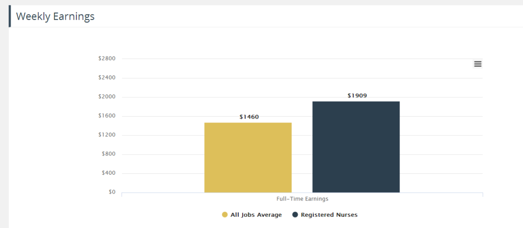 注冊護士的平均周薪為1909澳幣(所有行業平均:1460澳幣)。
