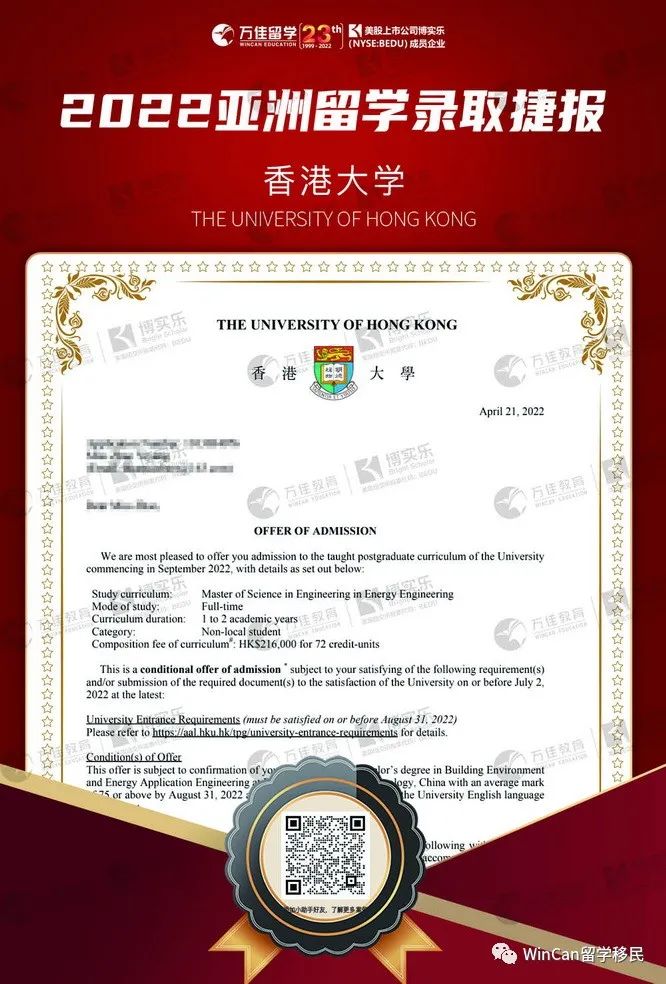 驚喜是一波接著一波,之前學(xué)生已經(jīng)被香港城市大學(xué)錄取了,這些都是對(duì)學(xué)生努力的最好回報(bào)。當(dāng)拿到錄取的那一刻、學(xué)生還不太敢相信呢,好幾天才緩過神兒來,真的是世界大學(xué)排名22的港大,夢(mèng)想照進(jìn)現(xiàn)實(shí),只要付出一切皆有可能。