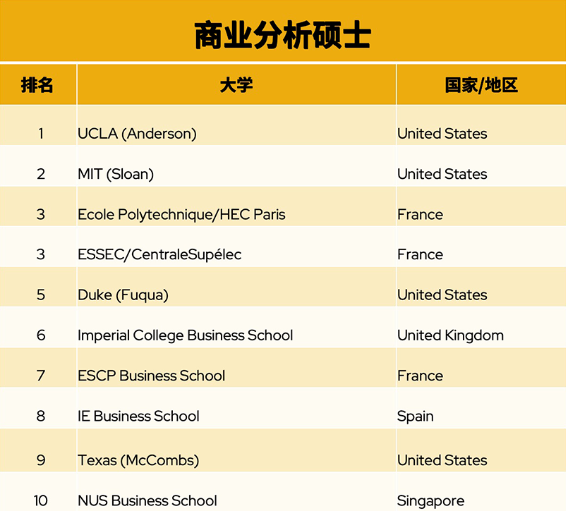 加州大學洛杉磯分校安德森商學院在商業分析碩士排名中位列榜首。