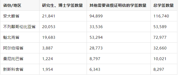 IRCC根據各省的歷史審批率及留學需求,分配了2025年留學簽證配額。以下為部分省份的概覽:
