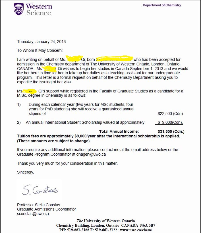 錄取情況; 西安大略大學 Chemistry 獲得西安大略大學全額獎學金31500加幣